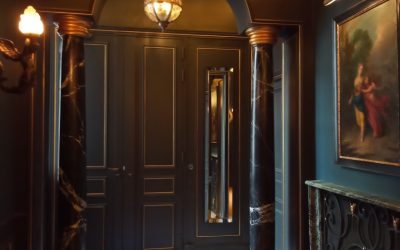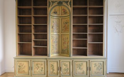 Restauration de meuble peint et de colonnes anciennes, de belle facture et de très grand charme, dans le cadre d’une rénovation d’un appartement parisien