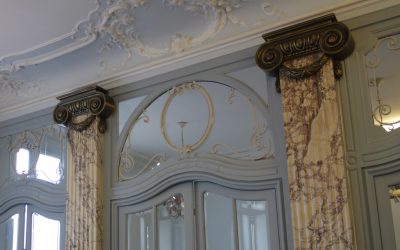 Décor de faux marbres : Dans le salon ovale du château de la Chesnay à Eaubonne, de style palladien et classé Monument Historique, nous y avons assuré la conception et la réalisation des faux marbres.