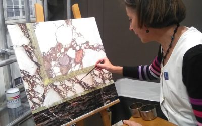 Démonstration de marqueterie de faux marbres brèches par Joëlle Godefroid : En novembre 2017, je suis à nouveau allée faire une démonstration au Salon du Patrimoine du Carrousel du Louvre, cette fois-ci sur le stand de l’Entreprise SEGUIN LEVY, entreprise avec laquelle…