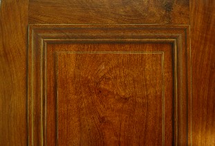 Meubles peints : décors composés d’imitation bois pour deux petits meubles modestes et charmants : Sur le meuble vitrine, imitation de marqueterie de noyer, avec filets de poirier teinté. Sur le meuble aux tiroirs de style Louis Philippe, imitation d’érable moucheté avec filets d’ébène.