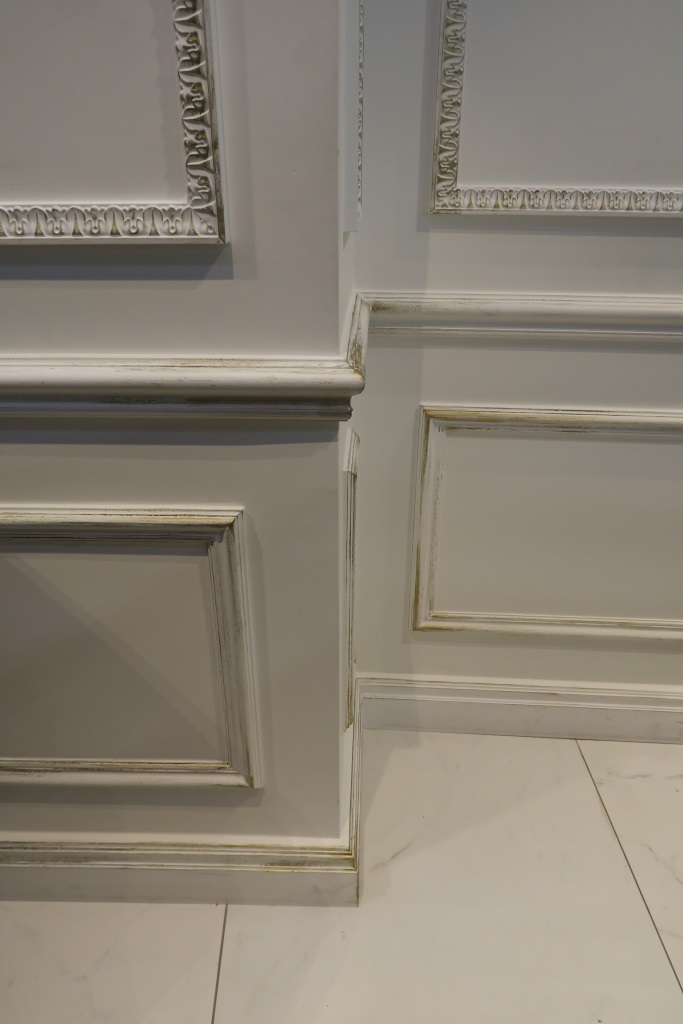 Décor mural contemporain jouant sur le décalage du classique revisité, par des audaces dans les contrastes de tons, de matières et par des touches de couleurs inattendues.