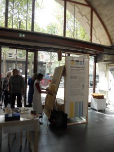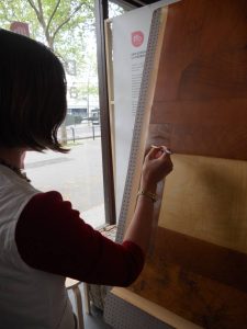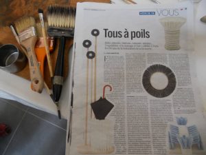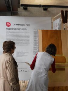 Intervention pour une démonstration d’utilisation de brosserie pour le décor -une imitation de bois- dans le cadre de l’exposition « Du ménage à l’art » organisée par la Fédération Française de la Brosserie (FFB), au Viaduc des Arts à Paris