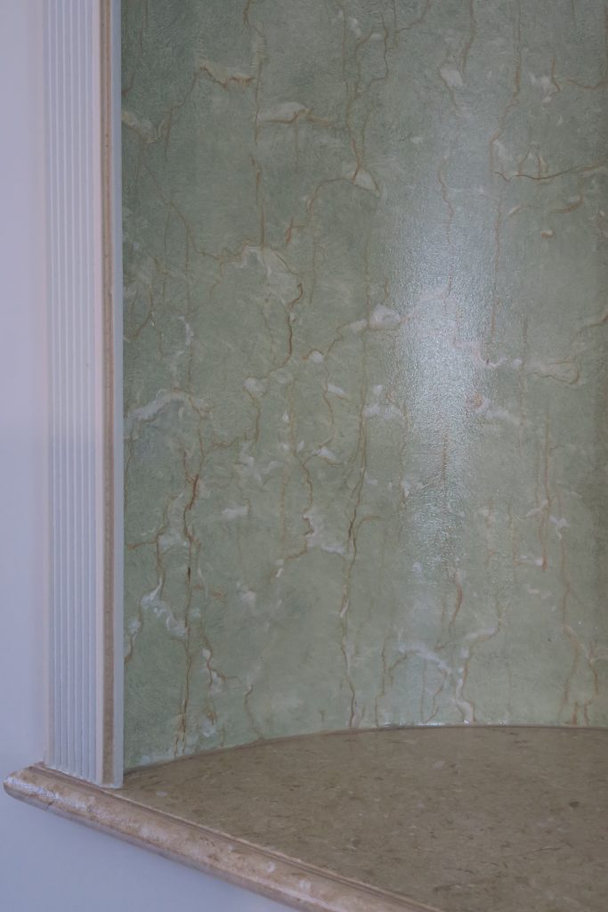 Les niches sont peintes en marbre ou en patine pour mettre en valeur les oeuvres qui y siegeront.