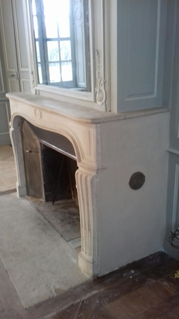 Ce type de décors est extrêment courant, je ne compte plus le nombre de cheminées que nous avons peintes, en pierre, en bois ou en marbre, de restitutions sur des joues cheminées, et de manteaux en imitation de fonte, patinées d’argent.