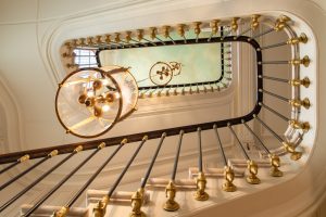 Sur le plafond d’un très bel immeuble construit à la fin du 19e siècle dans le 7e arrondissement de Paris :