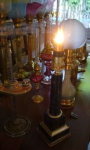 Guillaume Carcel met au point en 1800 sa lampe à huile (de colza, par exemple) comportant une pompe aspirante-refoulante actionnée par un moteur d’horlogerie, qui assure l’alimentation constante de la mèche. Le réservoir n’est plus latéral : il est maintenant sous le brûleur. Cette lampe, sur pied, a un brûleur à mèche cylindrique et un porte-verre mobile pour régler la flamme. Le verre-cheminée est à étranglement au niveau de la flamme.