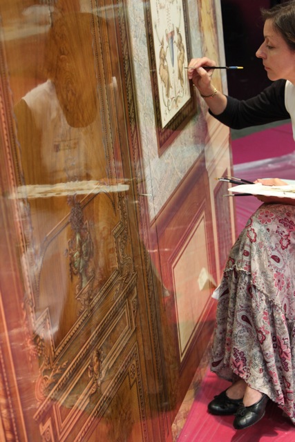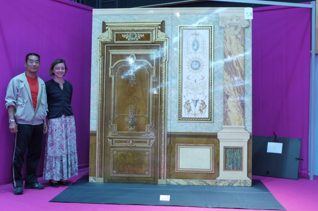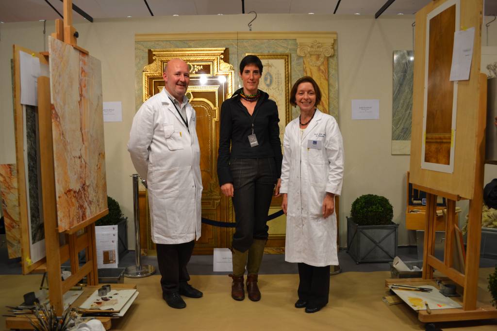 M. Jean Pierre Jury, présent sur le stand de l’École d’art Mural de Versailles en démonstration de sa remarquable technique d’imitation de marbre Sarrancolin. Mme S. Van der Kelen, historienne d’art, présente au salon du patrimoine du Carrousel du Louvre 2011, pour promouvoir et soutenir la préservation du patrimoine en Belgique. Nous en sommes infiniment touchés.