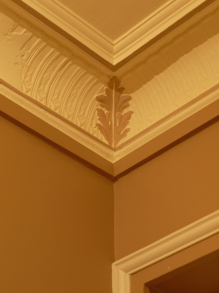 et dans le ton des murs, les beaux motifs des staffs des corniches et des rosaces.